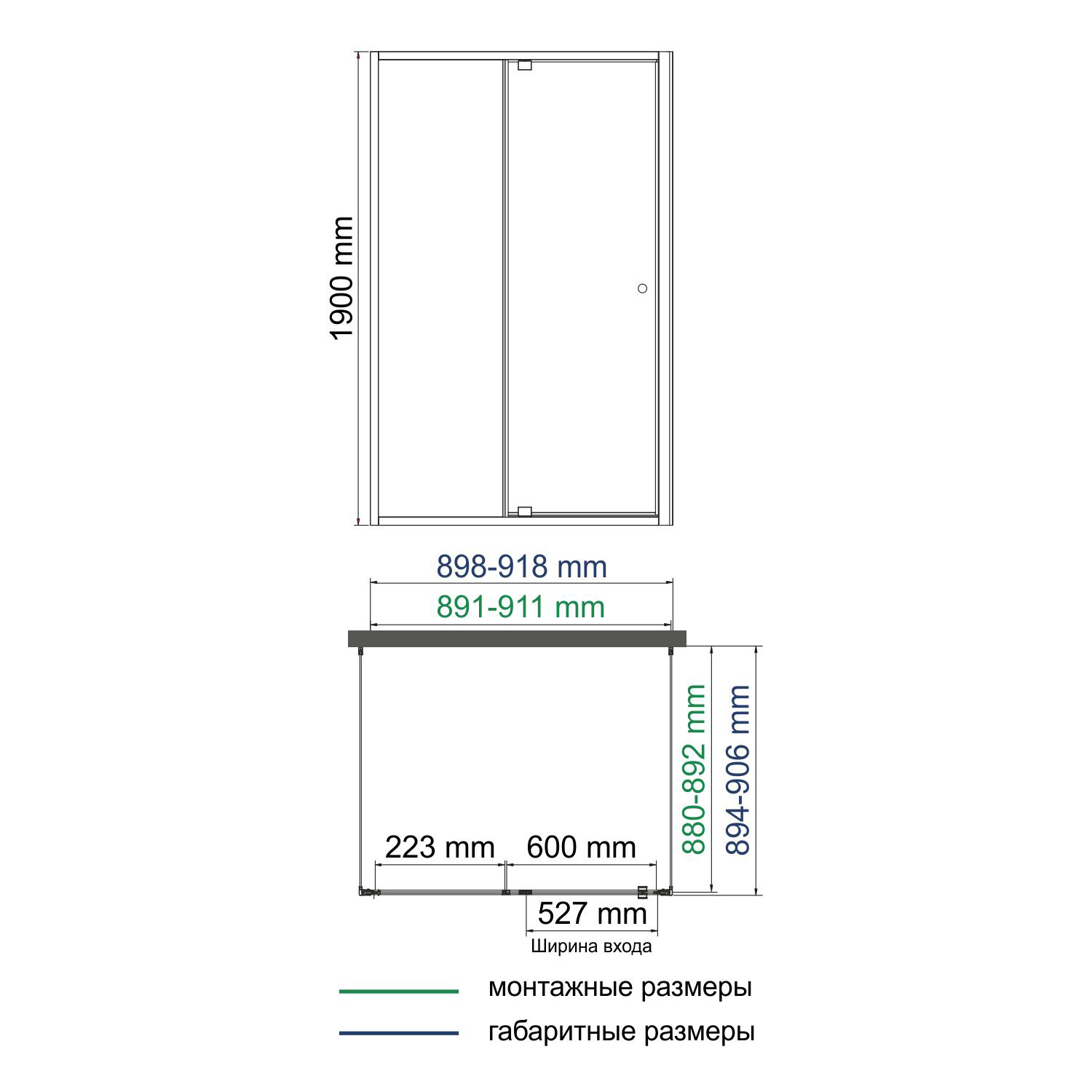 Номинальный размер 900x900х2000